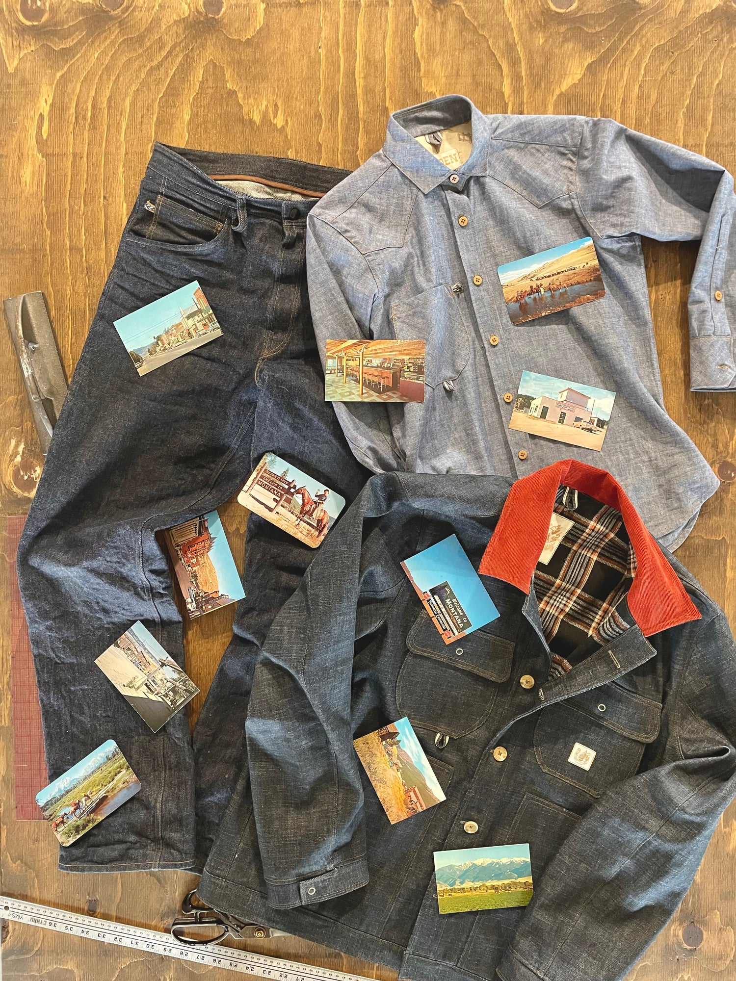 Selvage denim and woven goods handmade one at a time by Tilden Yamamoto in Waterloo, Montana. Traditional sewing on a single needle straight stitch.